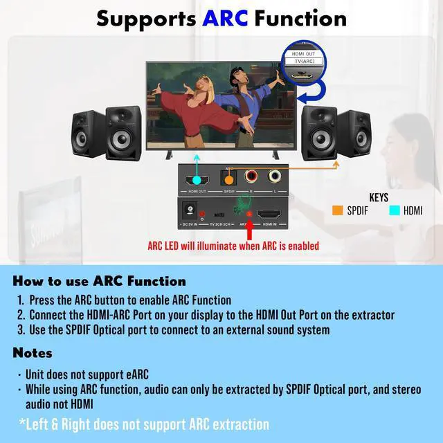 - While using the HDMI-ARC function, audio can only be extracted via this audio extractors Optical output and not the RCA output