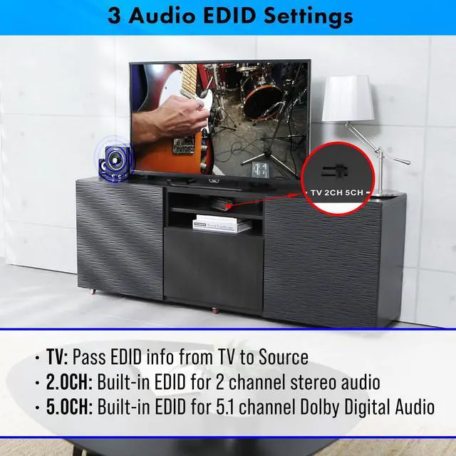 3 EDID modes via toggle switch to help decode the best audio format based on your application