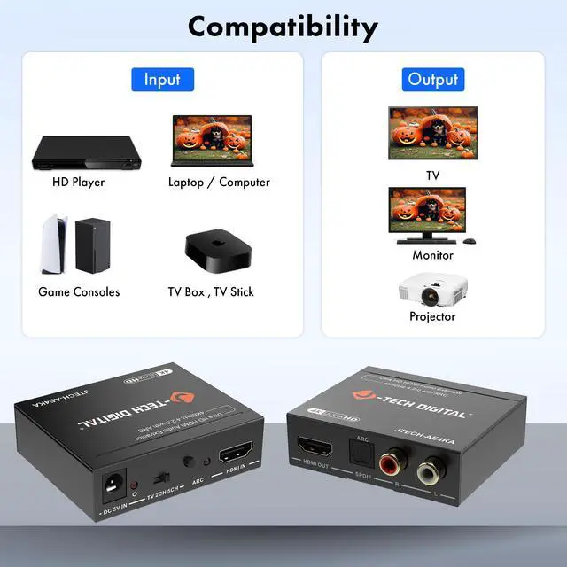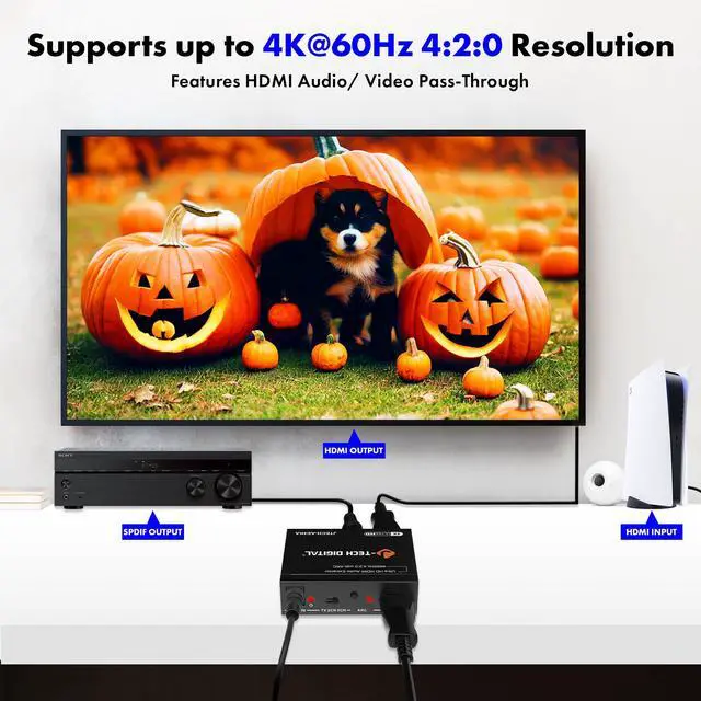 Please note: This HDMI audio extractor supports 4K@60Hz (4:2:0 and 4K@30Hz (4:4:4). If your source device does not output 4K@60 (4:2:0), then lower the resolution 4K@30Hz or 1080P for the extractor to properly process the signal. Compatible with HDMI 1.4 and HDCP 1.4 standards. This HDMI extractor does not downmix 5.1Ch audio to be output via RCA. Ensure that your source device is outputting the correct audio format based on the audio output that is being used. Search ASIN B0F3F6TJW4 to view our audio downmixing HDMI audio extractor
