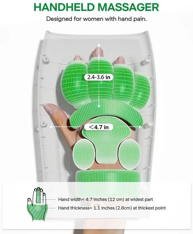 This massager fits most women’s hand sizes. For larger hands (palm width over 4.7 inches), please check product dimensions before purchasing. For a more accurate fit, refer to the size details.