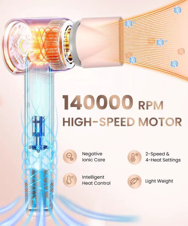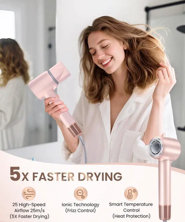 Meditoross Hair Dryer: Professional 5X Faster Drying with 140,000 RPM Motor Experience ultra-fast drying with the Meditoross blow dryer, engineered with a high-speed 140,000 RPM brushless motor and upgraded power that delivers a powerful 25 m/s airflow. This high speed hair dryer cuts drying time to just 25 minutes5 times faster than traditional dryersmaking it the ultimate fast drying hair dryer for efficient styling.