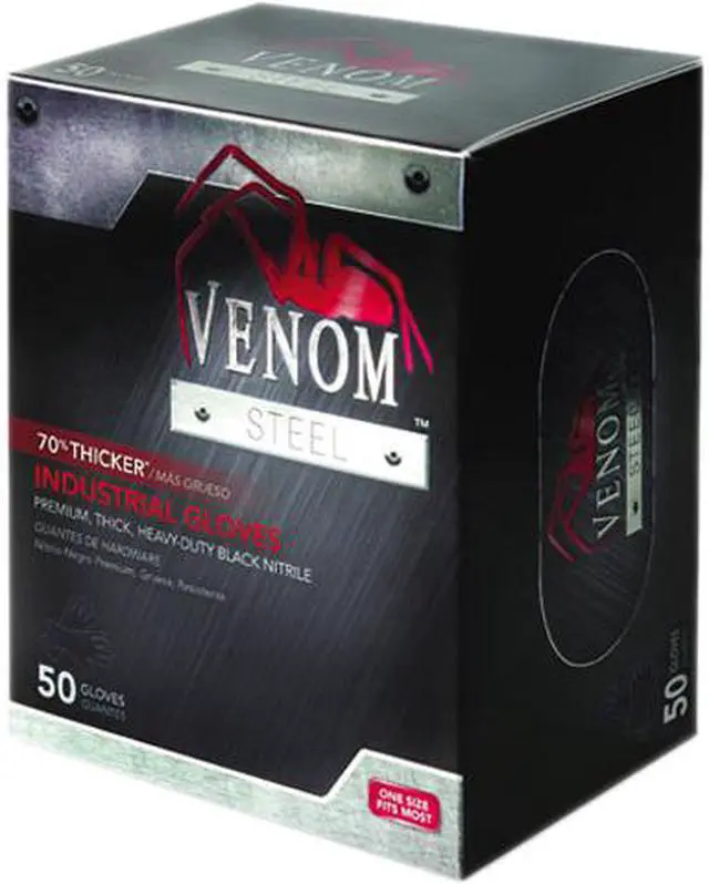 Medline VEN6045 Venom Steel Industrial Nitrile Gloves, X-Large, Black, Powder-Free, 50/Box