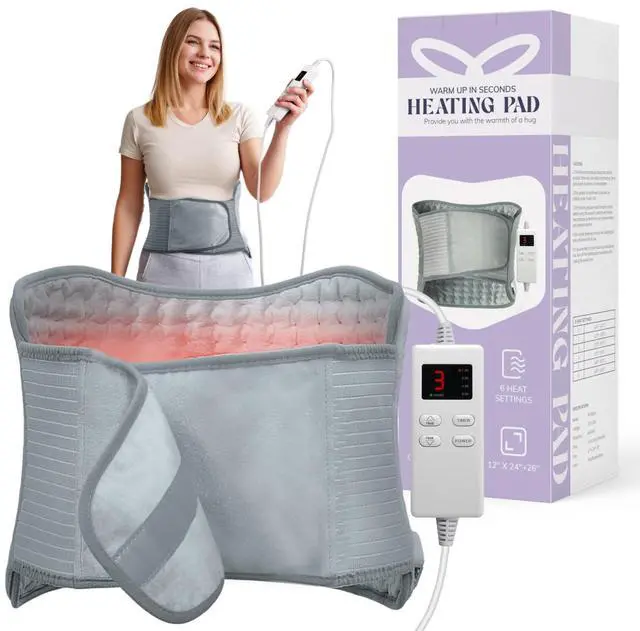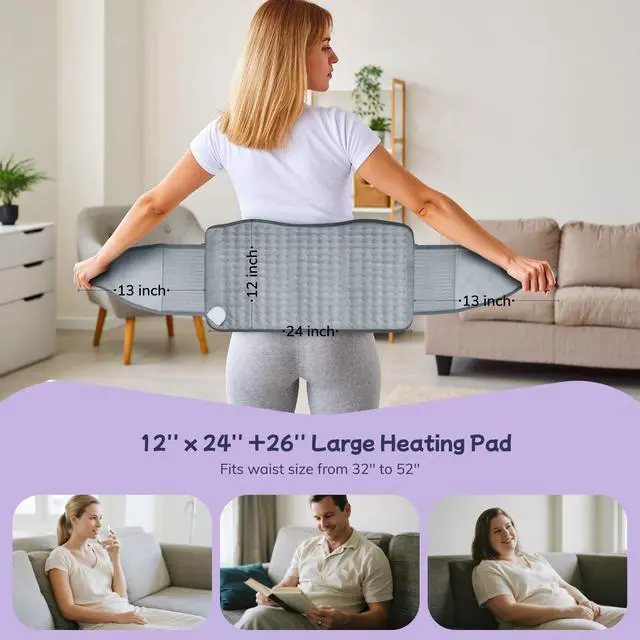 Heating Pad for Back Pain Relief, Electric Heating Pad for Period Cramps Neck Shoulders with Belt, 4 Timer & 6 Heat Setting, 12"x24"+26" Large Moist Heat Pad for Mom, Dad, Gifts for Mom, Dad