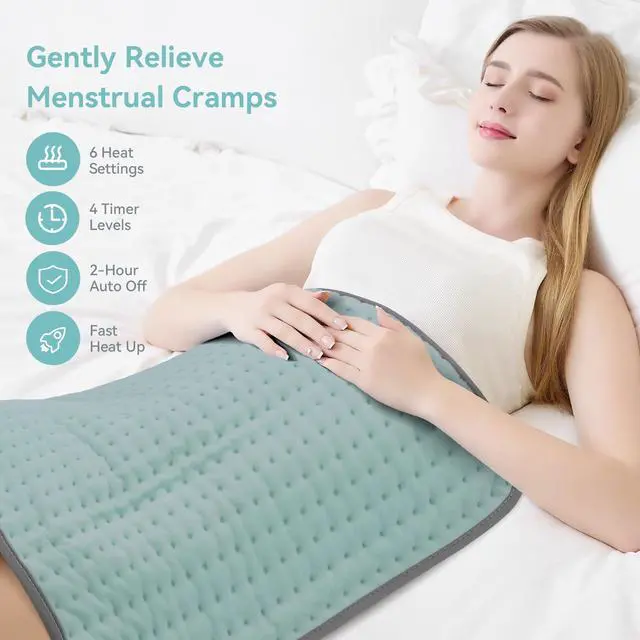 This extra large electric heating pad heats up faster than the competition and has adjustable settings, so you can control the heat intensity and temperature according to your needs. Don't worry about the safety, it will auto shut off in up to 2 hours if you fall asleep accidentally, ensuring your safety & peaceful rest.