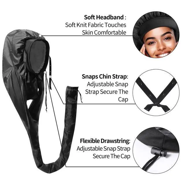 • Good Fabric Quality-We use three different quality of fabrics.The headband is in good quality and thick knit fabric,which is comfortable to touch the skin.The drying hood is made in waterproof fabric ,which can lock the heat and easy to wash.The lining hood is in fast-drying mesh quality,which helps to save drying time and protect hair
