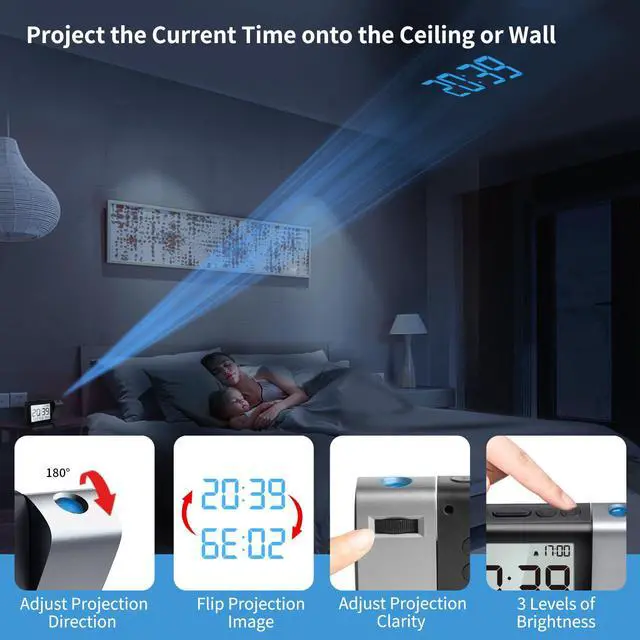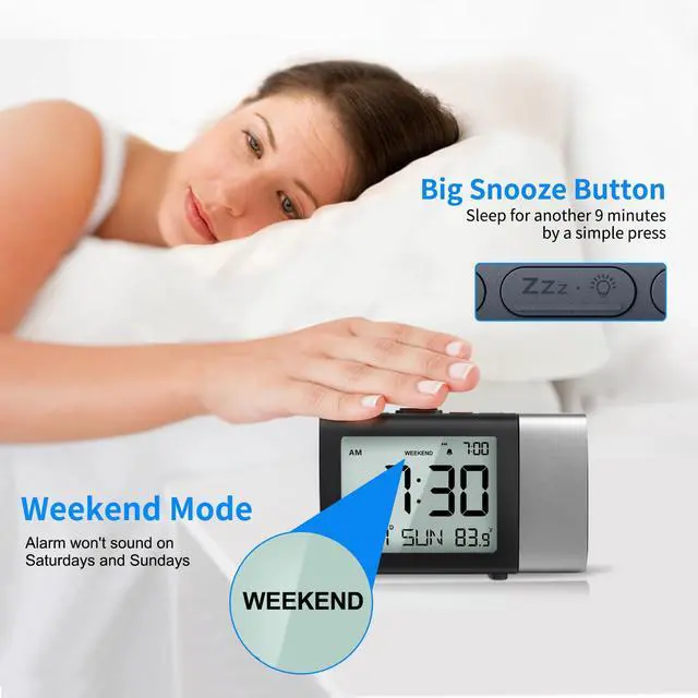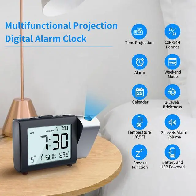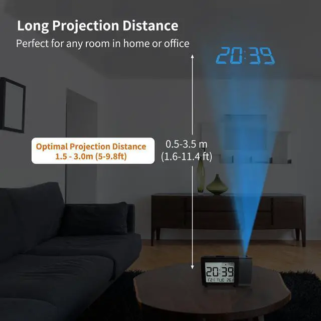 This MeesMeek digital projection alarm clock with date & temperature fits various scenes like home, bedroom, office and more. An ideal clock for friends & family on birthdays, Father's Day, Mother's Day, holidays & special occasions.