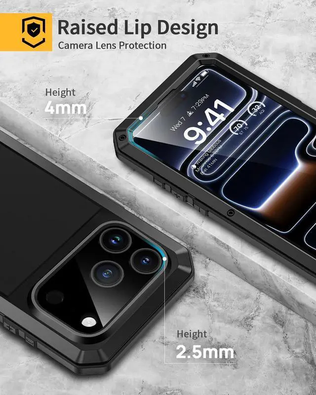 ![Alt view image 7 of 7 - _Mega Brand for iPhone 17 Pro Metal Case, Built-in Glass Screen Protector, Heavy Duty Shockproof Case [Military-Grade Full Protective] Tough Rugged Phone Cover for iPhone 17 Pro 6.3", Black](https://c1.neweggimages.com/productimage/nb640/C0NDD2510110GELD3FF.jpg)