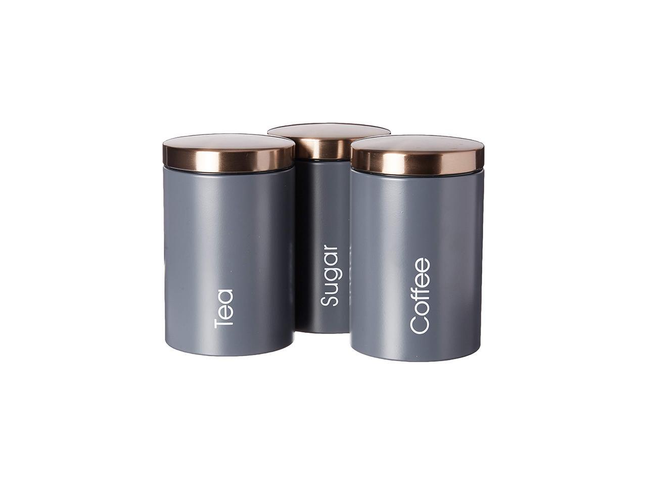 MegaChef Essential Kitchen Storage 3 Piece Labeled Canister Set in Matte Gray