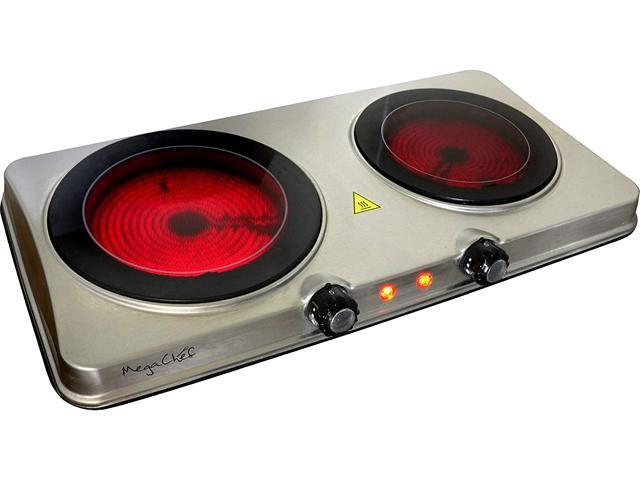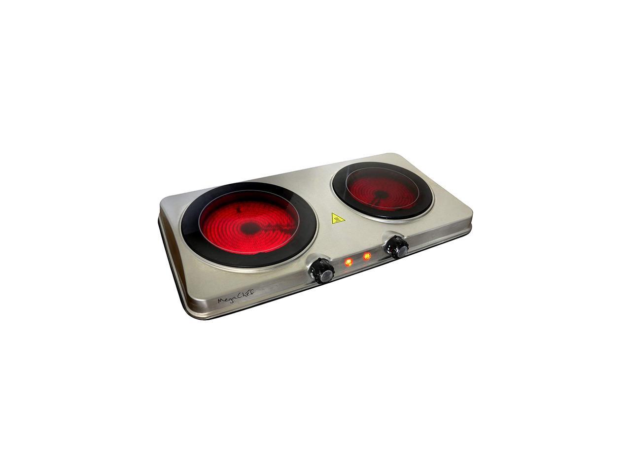 MegaChef Electric Easily Portable Heavy Duty Lightweight Dual Size Infrared Burner Cooktop Buffet Range in Sleek Steel MC-6206A