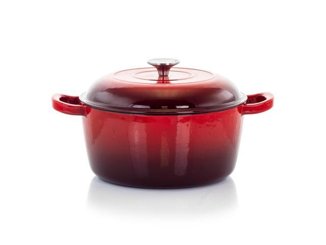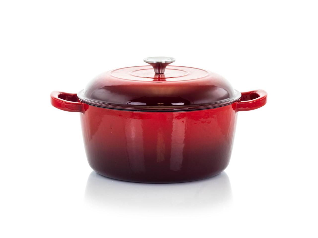 MegaChef 5 Quarts Round Enameled Cast Iron Casserole with Lid in Gradient Red, MG-CR25AR