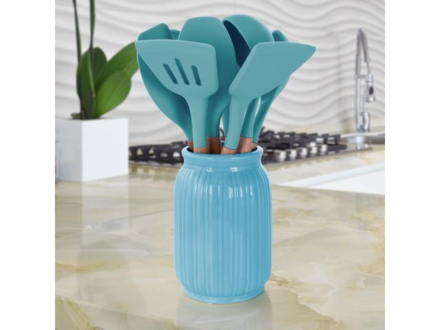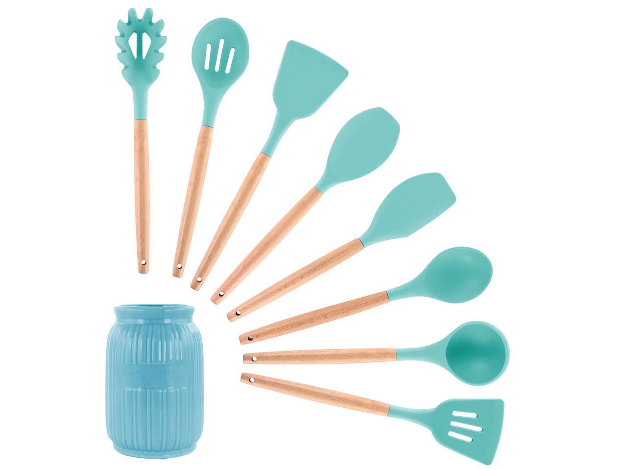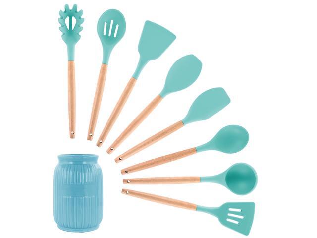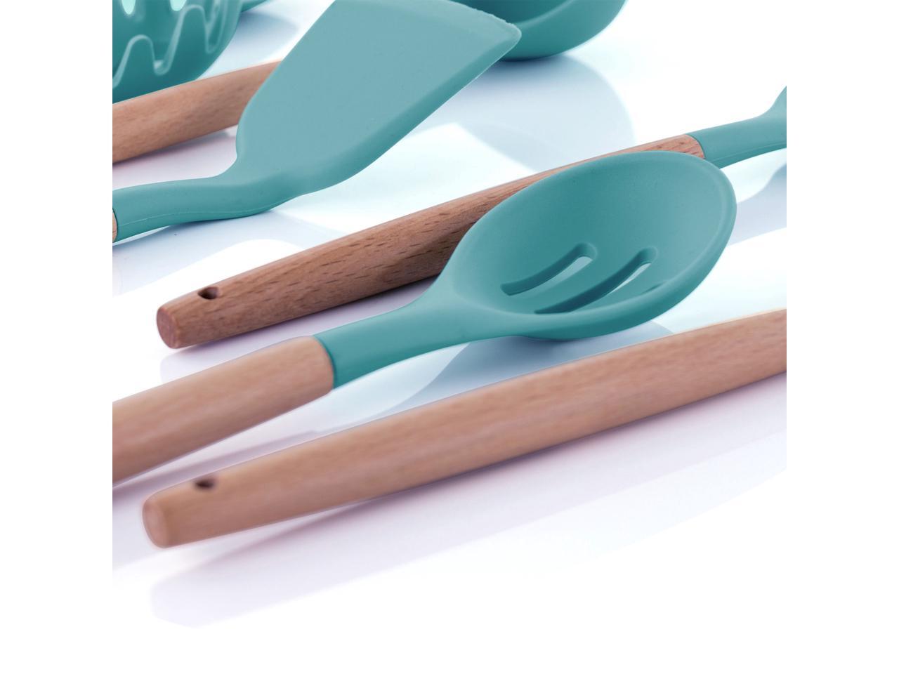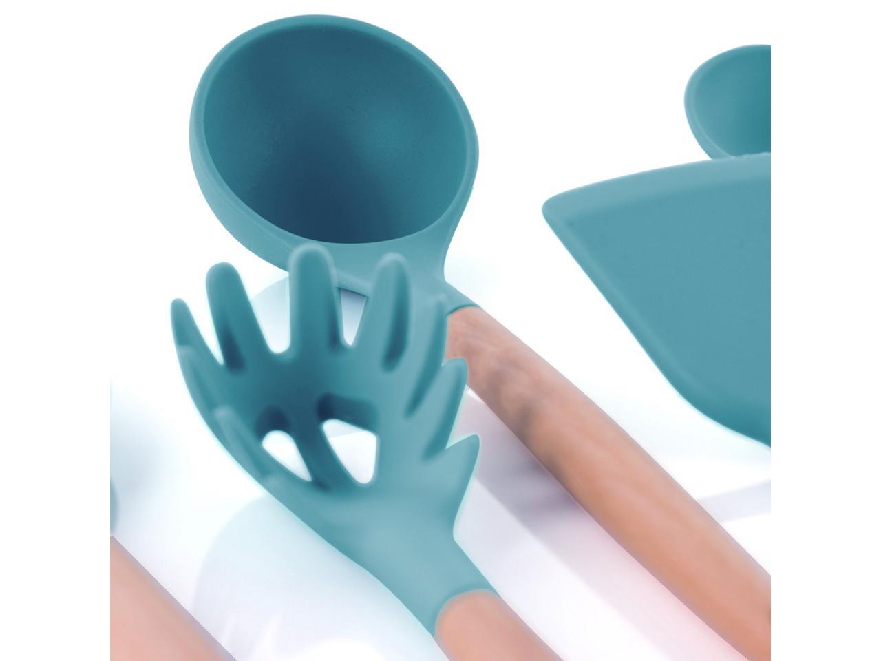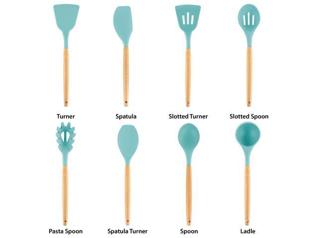 MegaChef Light Teal Silicone and Wood Cooking Utensils, Set of 9, MGSP-465