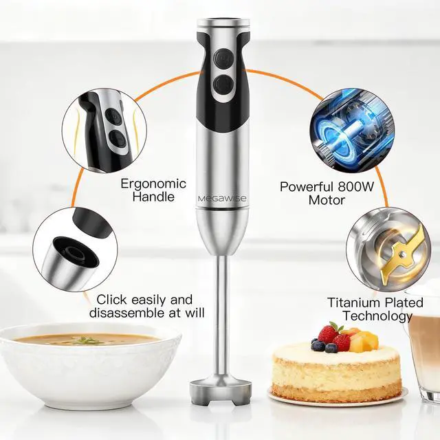 Simplify your kitchen routine and enhance your kitchen experience with the Megawise Hand Blender.