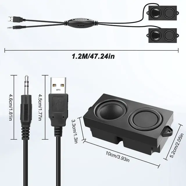 Mini Size: This pc speaker with mini size only 100x50x65mm that is portable to take it into backpack with laptop together. A perfect small speakers while business trip for a meeting or outgoing.