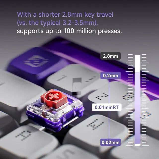• A low-profile HE keyboard optimized for gaming: With shorter key travel: 2.8mm, faster and smoother keystrokes, and the TTC KOM mini switch, it enhances both your gaming and typing experience.
