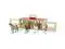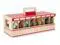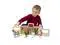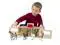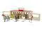 A play set to please equestrians of every age! This handsome wooden stable houses eight flocked horses, each in its own stall. Swing open the stable doors to take them out for playtime, then put each one back in its stall until the next big horse show! The sturdy wooden stable box features a comfortable handle on the top, a child-safe metal latch on the wide wooden doors, and an illustrated breed guide on the bottom panel with information about each horse. Also includes write-on labels so kids can name each horse and label the stalls!