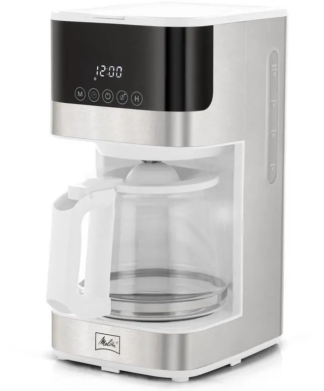 Melitta Aroma Tocco Glass Drip Coffee Maker | Programmable Coffee Machine | Glass Carafe Coffee Pot | 10 Cup Coffee Maker | Glass Touch Control Panel | Stainless Steel accented | White
