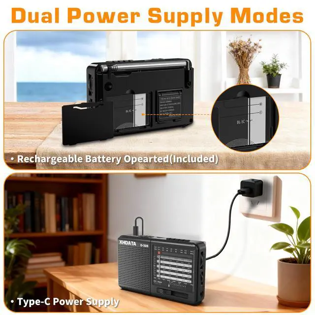 - Type-C USB Charging: Rechargeable radio that supports Type-C charging, no need to buy new batteries frequently, more convenient and durable.