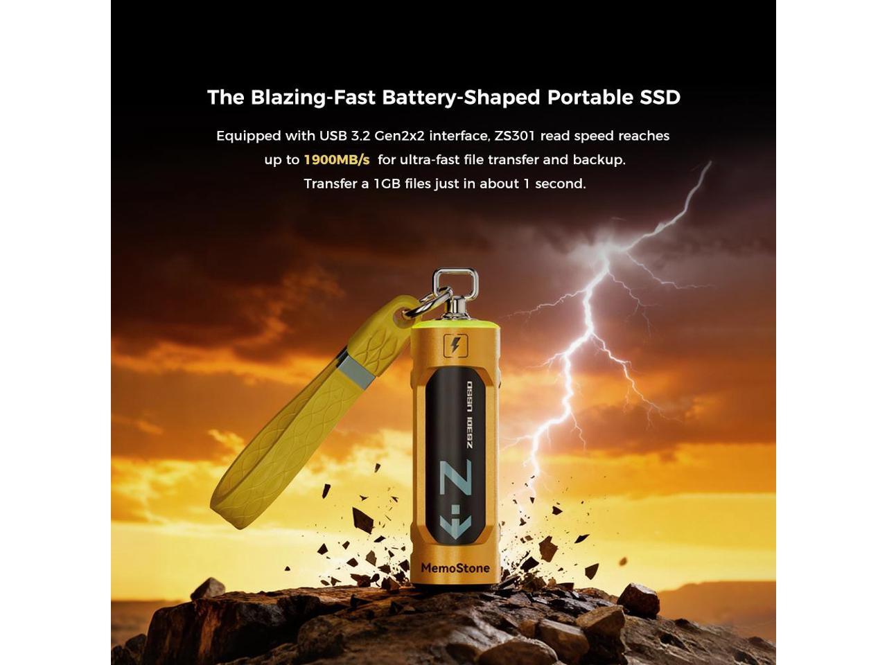MemoStone 1TB 20Gbps Extreme Portable SSD - Up to 1900MB/s - USB-C, USB 3.2 Gen 2 - RGB External Solid State Drive - ZS301, Yellow