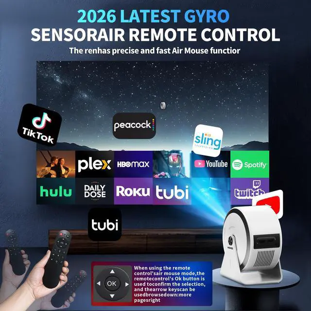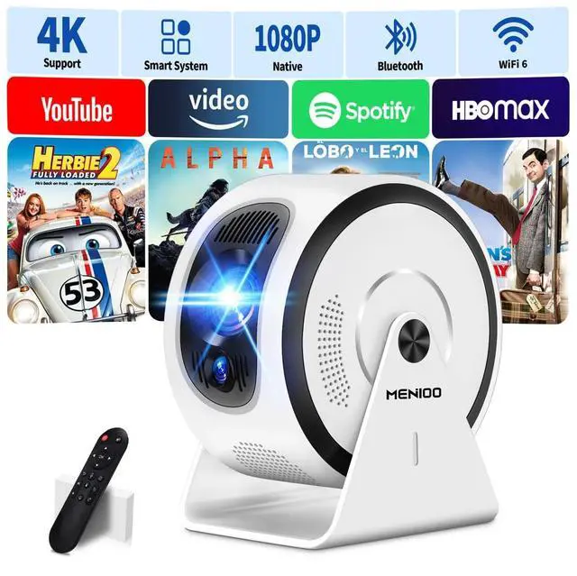 [Built-in Apps & 2026 Upgraded Mini Projector] MENIOO projector experience a world of entertainment with over 4000 apps at your fingertips, including access to popular streaming platforms like, Prime Video, YouTube, and more. Smart projector is equipped with built-in smart Android TV OS, you can access millions of videos without using an additional TV stick. A vast library of video content at your fingertips, effortlessly catering to diverse needs such as watching films, binge-watching series, gaming, and presentations. Enjoy your very own movie night in the comfort of your own home!