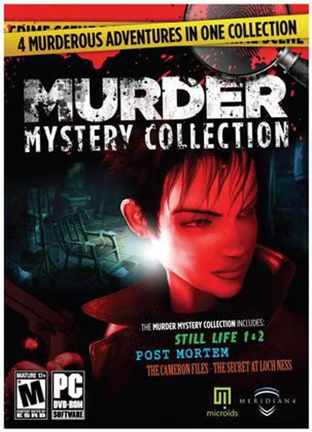| Features | The Murder Mystery Collection combines some of the best murder adventures ever made. The Murder Mystery Collection includes: Still Life – Victoria is a brilliant young FBI agent who's investigating a serial murder case. The body count is now at five and with the lack of real leads she is beginning to lose hope. Deciding to take a break in her family's home she finds one of her grandfather's old case files and begins to read. Oddly enough, Victoria's present case resembles the one from the past, right down to the killer's MO... Still Life 2 – FBI Agent, Victoria is sent to Maine where a girl's body has just been found. The modus operandi leaves no doubt - the East Coast Torturer has struck again! Journalist, Paloma Hernandez has been kidnapped by the killer and now it's up to you to alternate between investigation and survival as two characters are bound by the same fate. Loch Ness - Lost in the Scottish countryside, perched above Loch Ness, the manor of Devils Ridge is disturbed by seemingly supernatural occurrences. At the request of the manor's owner, detective Alan W. Cameron leaves his office of Chicago to plunge into the ground of his ancestors. But, on his arrival, the owner has disappeared... Post Mortem – A stunning investigation in Paris of 1920's. After retiring to the quiet streets of Paris to pursue a life of painting, Gus Macpherson could not escape his true art... The former New York detective finds himself walking the beat once again, when hired by a sensuous woman to investigate the gruesome beheadings of her sister and brother-in-law. |