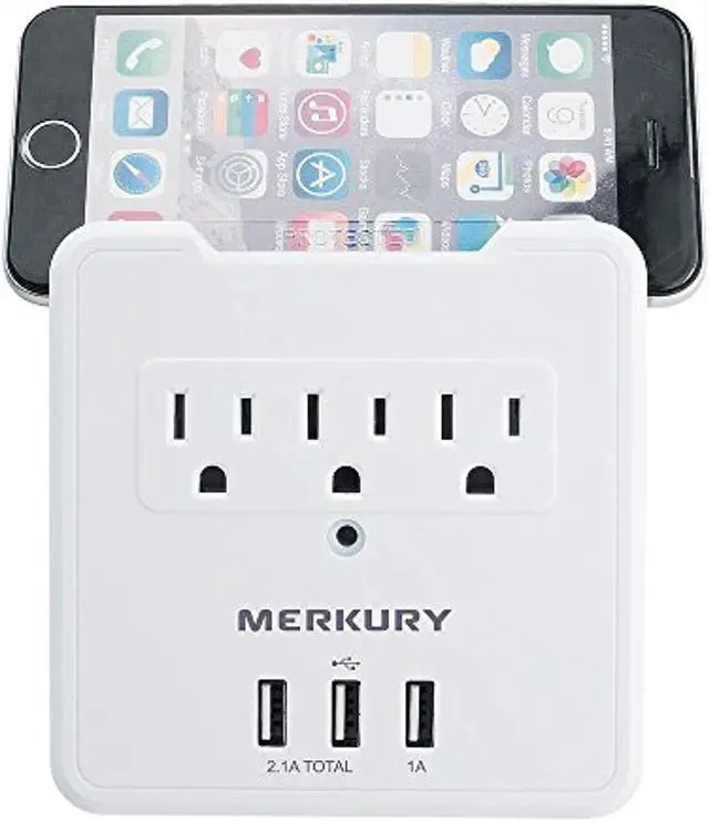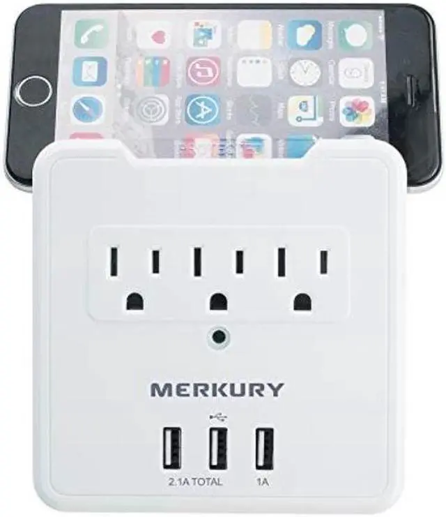 Merkury MI-WC335-199 3.1A USB Wall Plate w/ Built-In Phone Mount - 3 AC / 3-USB Ports