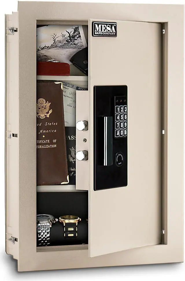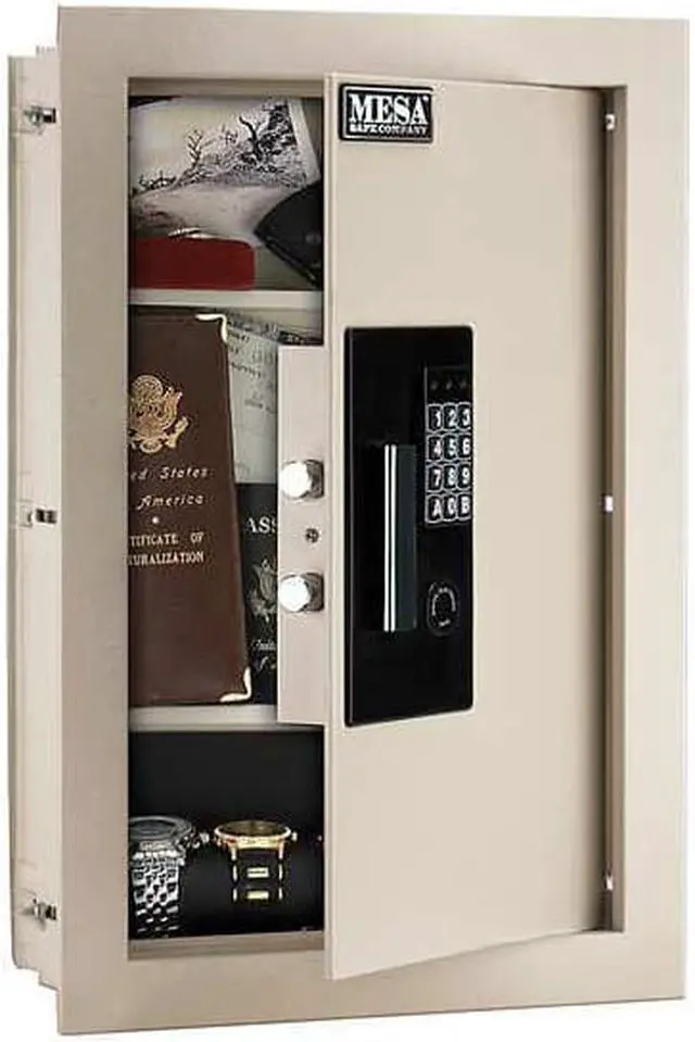California Proposition 65: This product contains a chemical known to the State of California to cause birth defects or other reproductive harm. Safe, Off White, Net Weight 40 lb, Capacity 0.7 cu ft, Material Steel, Finish Matte, Number of Shelves 2, Lock Style Electronic Lock, Number of Bolts 2, Outside Height 22 1/8 in, Outside Width 15 in, Outside Depth 6 in, Inside Height 19 1/2 in, Inside Width 12 1/4 in, Inside Depth 4 3/4 in, Door Opening Height 18 1/4 in, Door Opening Width 11 in, Wall Cut Out Height 21 1/8 in, Wall Cut Out Width 14 in, Face Height 22 1/8 in, Face Width 15 in, Door Plate Thickness 1/4 in. This item has been restricted from sale in the following state (s): []