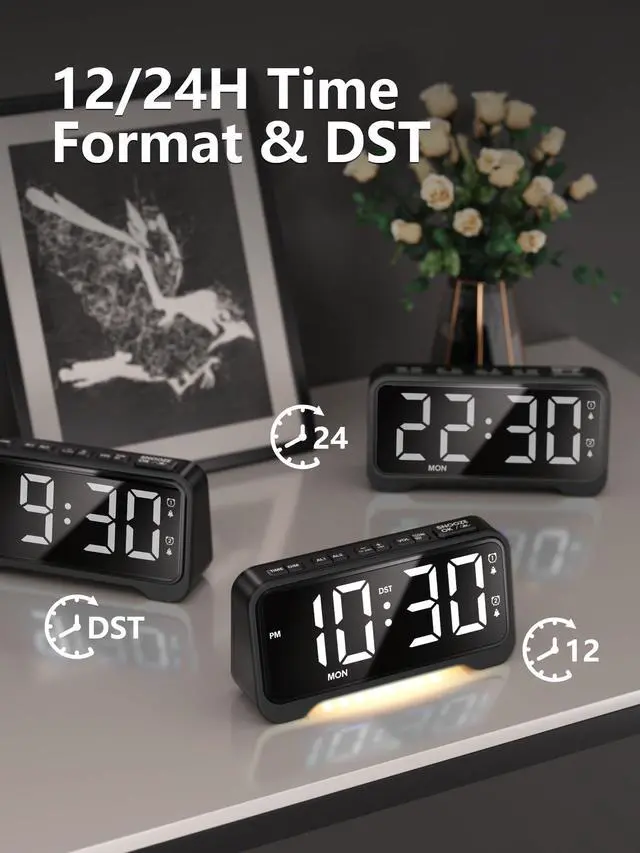 Designed for Everyone Simple, Smart, StylishWith its modern matte design, large snooze button, and sliding switches for DST, 12/24H, volume, and alarm mode, this clock is intuitive enough for seniors, kids, or anyone who wants stress-free mornings.