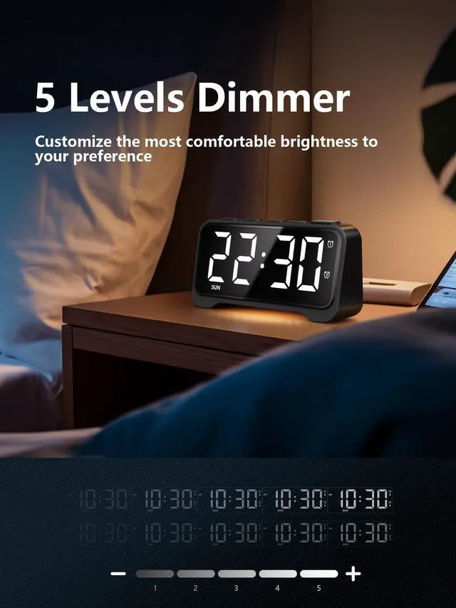 Dual Alarms & Smart Scheduling for Every RoutineSet two independent alarms and customize them for daily, weekdays, or weekends only. Great for couples, shift workers, and school mornings. Tap the big snooze button for 9 more minutes when you need it most.