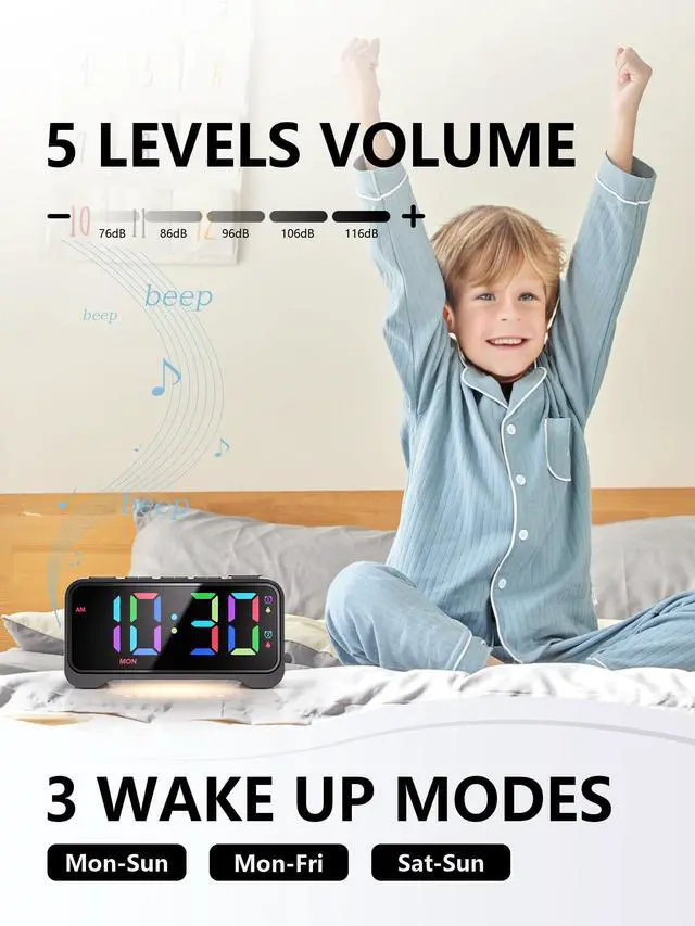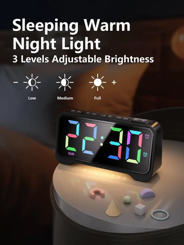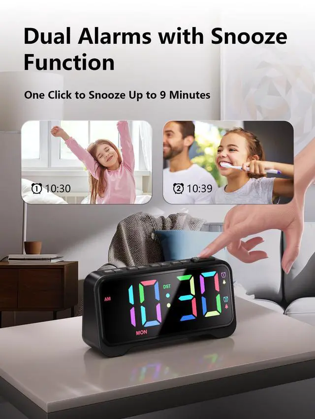 This alarm clock supports dual independent alarms (Alarm 1 and Alarm 2). You can: Set different times for each alarm, Customize repeat schedules separately (e.g., weekdays vs. weekends), Enable both alarms simultaneously