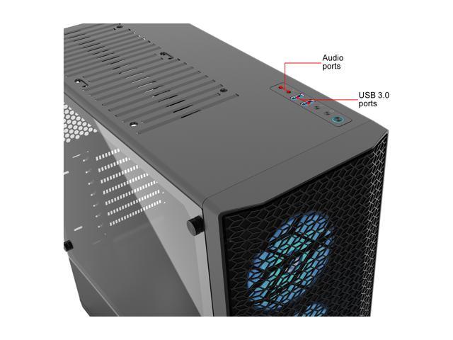 - Easy accessibility to I/O featuring 2x USB 3.0, Mic, Headphone, Power button, Reset, and the RGB controller