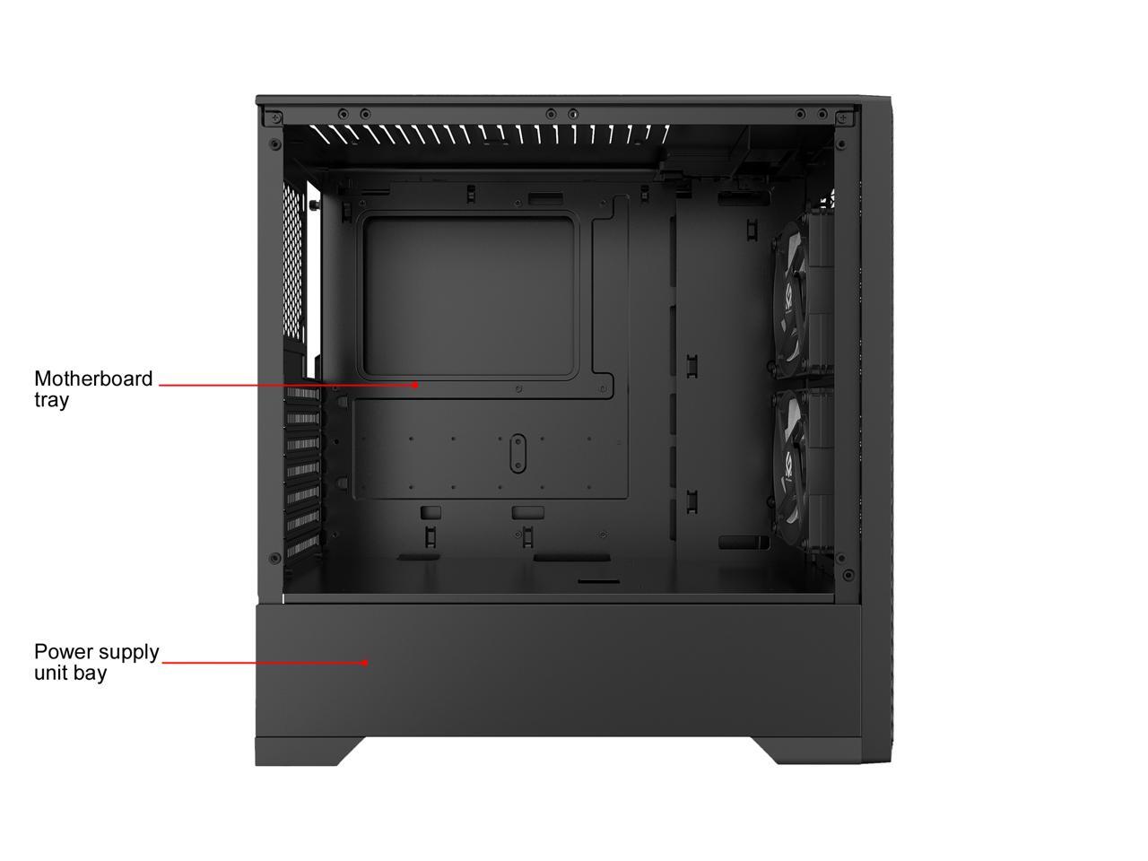 - Up to 280mm Radiator support for liquid cooling builds and vertical GPU mounting with optional bracket (sold separately)