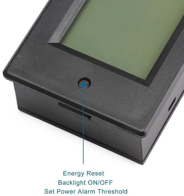 • Multifunctional: the accumulated energy can be reset by button; Store data when power off; Voltage alarm function (over voltage alarm threshold, backlight and voltage will flash to alarm).