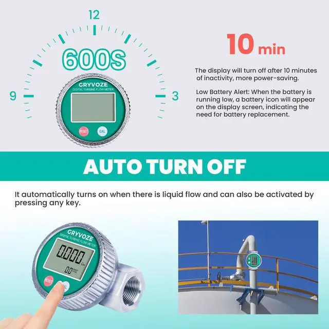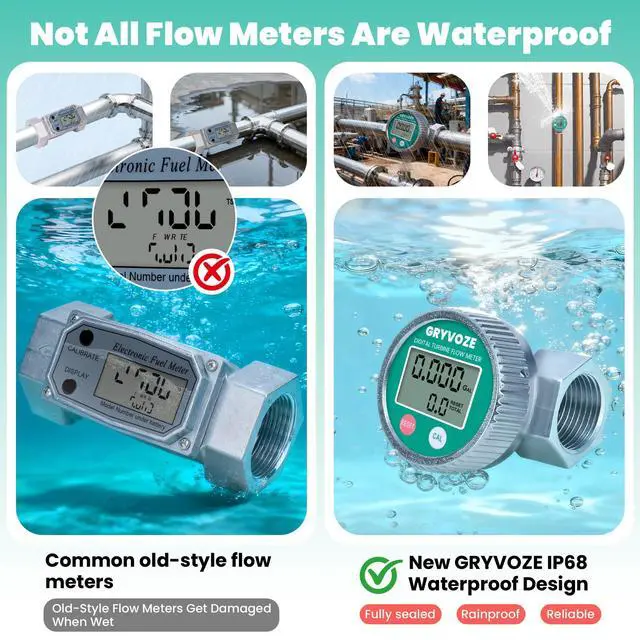Please check the auto-sleep function and try replacing the battery. If neither works, the flowmeter might have water damage, which can harm the PCB. If you need a waterproof model, we recommend purchasing our waterproof flowmeter.