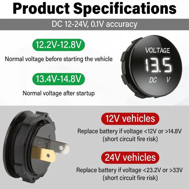 Yes, the DC 12V 24V Voltmeter Gauge is suitable for boats. Water-resisten design protects against saltwater and moisture exposure.