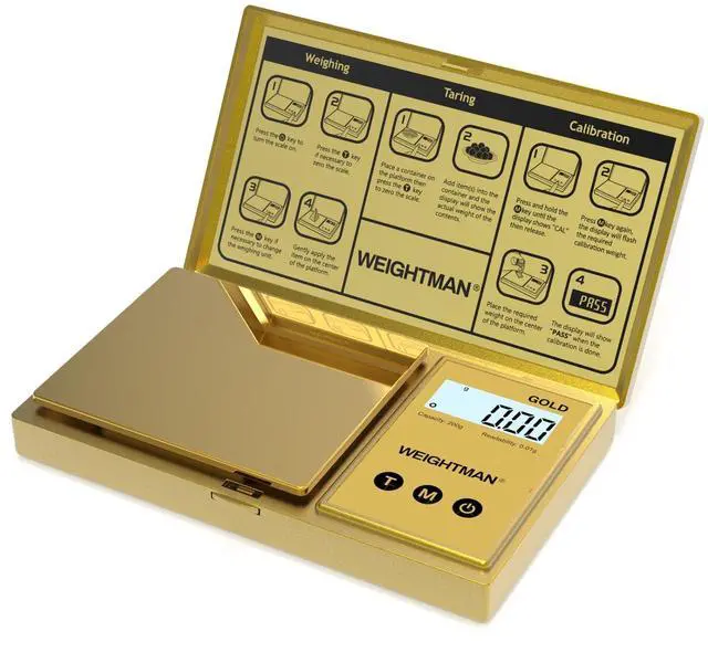 The weighing platform all plated by gold titanium, shining like a mirror.