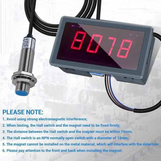 - The Hall switch is an NPN normally open switch with a diameter of 12mm;