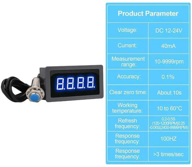 Package Includes: 1 x LED Tachometer.1 x NPN hall proximity sensor.1 x Magnet