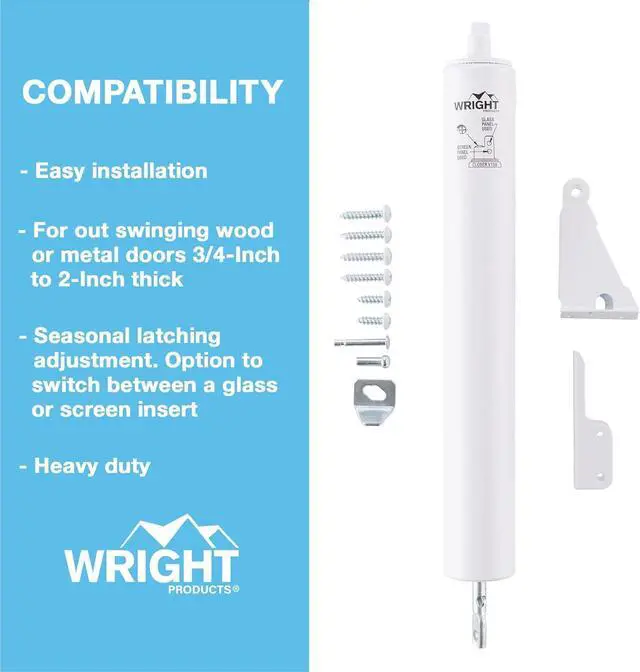 | Made for | Out-swinging or metal storm doors | Out-swinging light-to-medium weight metal, wood, or vinyl screen and storm doors | Out-swinging medium-to-heavy weight full view metal storm or security doors | Out-swinging doors |