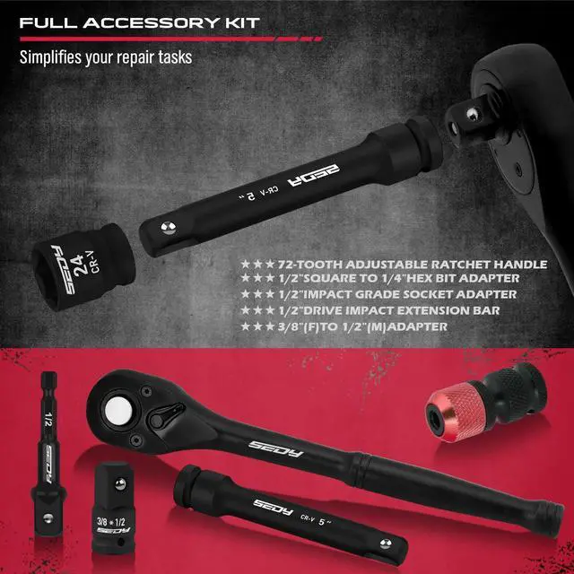VERSATILE RANGE - This 25-piece impact socket set icludes a wide array of metric and SAE hex sockets wrench set, from 7/16-Inch to 1-Inch and 13mm to 24mm, making it perfect for any mechanic, car repair, or workbench task