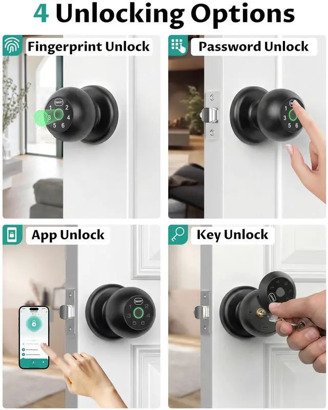 4 Ways of keyless access - Biometrics / Keyless touchpad / APP / Keys