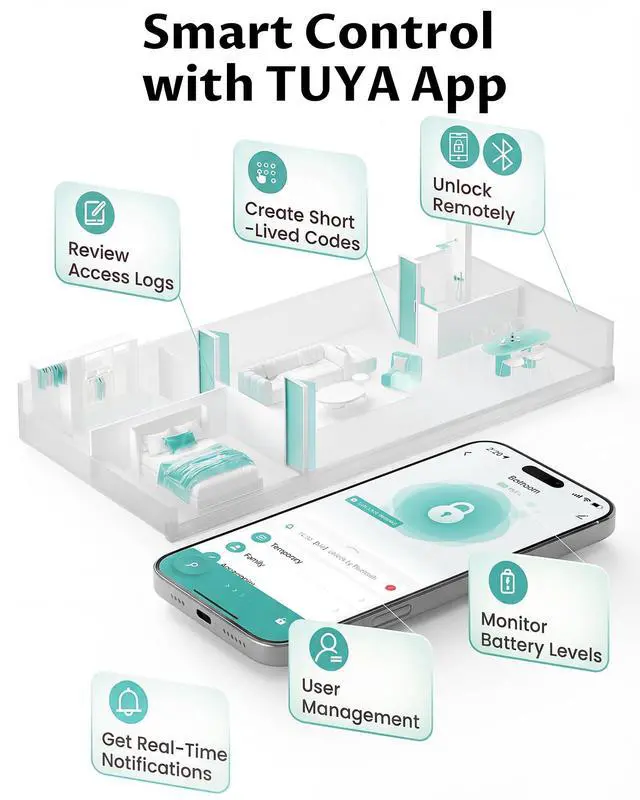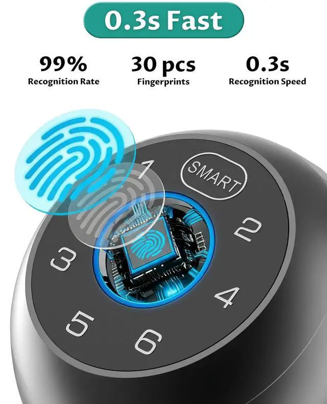 - Access: 30 Fingerprints,15 User codes, 2 Keys