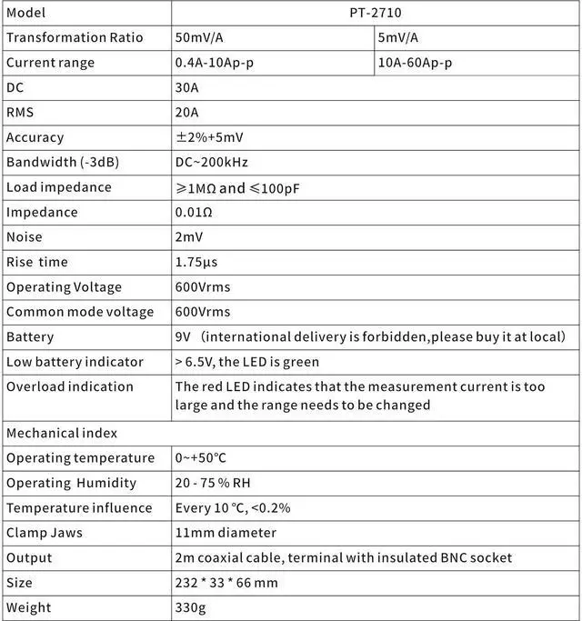 • PINTECH AC/DC current probe's bandwidth up to 200KHz, ±2%+5mV accuracy, featuring with low battery indication, low noise level, and high detection accuracy.