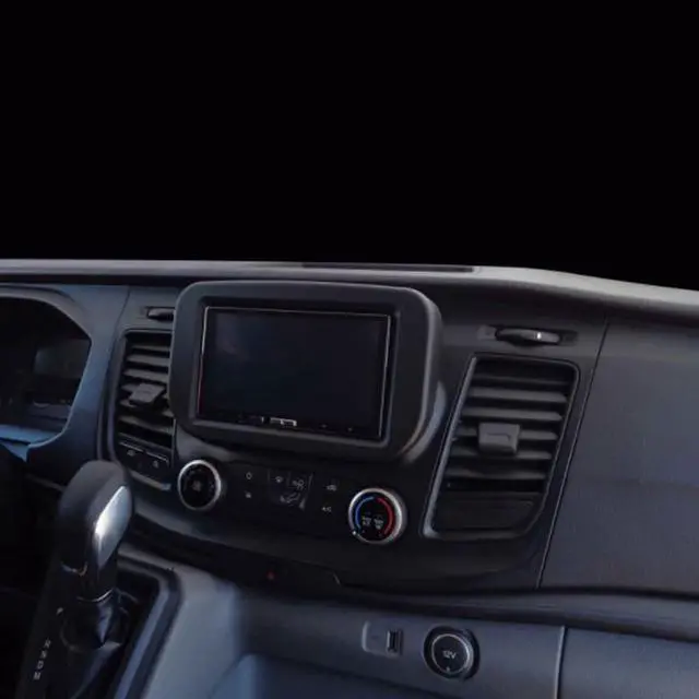 The 107-FD1B fits the 2020 Ford Transit, excluding models with the factory radio delete option. This dash kit is designed for Double-DIN radios that have an “L” shaped chassis design with the radio chassis at the bottom of the screen. This includes Pioneer’s 6.8-inch modular receivers and installers should refer to the radio manufacturer for current models. The 107-FD1B fits the 2020 Ford Transit, excluding models with the factory radio delete option. This dash kit is designed for Double-DIN radios that have an “L” shaped chassis design with the radio chassis at the bottom of the screen. This includes Pioneer’s 6.8-inch modular receivers and installers should refer to the radio manufacturer for current models. The 107-FD1B is painted scratch-resistant matte black.