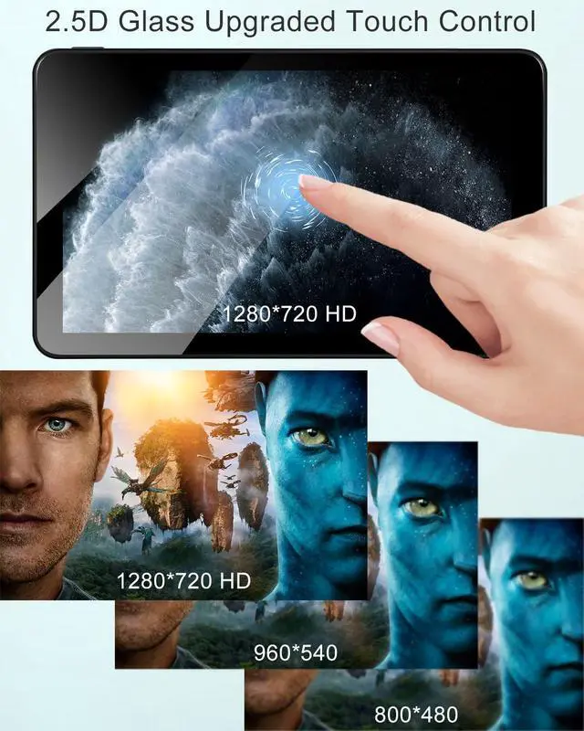 In-car Audio and VideoThe 1280*720 high-definition touch display brings you more shocking visual effects than mobile phones. The 2.5D tempered glass screen display brightness is adjustable. Built-in stereo speakers. At the same time, you can connect your car audio through Bluetooth, FM and AUX cables to bring a better music playback experience.