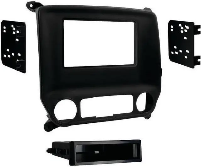 Complete your radio provision with Metra. This 99-3014G ISO-/Double-DIN Installation Kit for 2014 and Up Chevrolet Silverado 1500/GMC Sierra 1500 vehicles fits ISO-DIN with pocket and double-DINs. It is painted gunmetal gray. Do the job right with Metra!. ISO-DIN radio provision with pocket. Double-DIN radio provision. Gunmetal Gray. Includes brackets & Phillips screws. Fits Chevrolet Silverado 1500 2014 & up, GMC Sierra 1500 2014 & up