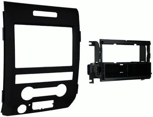 Keep your dash pristine after installing an aftermarket radio. This Metra 99-5820B installation kit allows easy mounting of your single- or double-DIN radio in most 2009 through 2014 Ford F-150s. Finish the job right with Metra!. Select models without 4.2" LCD for 2013. DIN radio provision with pocket. ISO-DIN radio provision with pocket. Painted matte black to match factory finish. Includes ISO brackets & panel clips. F-150 XL 09-13 with Plus Package. F-150 XLT 09-12 with 3 Buttons Across the Top. F-150 13-13 FX2 with Base Trim (Group 400A).