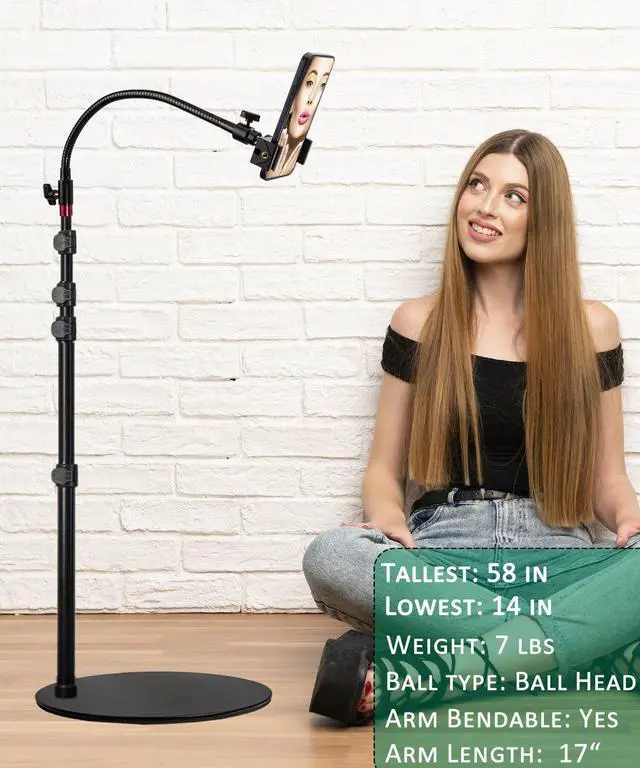 | Specifications | 43 L x 30 W x 4 H centimeters, 6.7 pounds, Aluminum, Alloy Steel, 360 Degree Rotation, Bendable Extendable Arm, iPhone 16, iPhone 16 Plus, iPhone 16 Pro, iPhone 16 Pro Max,iPhone 15, iPhone 15 Pro Max, iPhone 15 Plus, iPhone 15 Pro, iPhone 14, iPhone 14 Pro, iPhone 14 Pro Max, iPhone 13 Pro Max, iPhone 13 Pro, iPhone 13, iPhone 13 Mini, iPhone 12 Pro Max, iPhone 12 Pro, iPhone 12, iPhone 12 Mini, iPhone 11, 11 Pro, 11 Pro Max, XS Max, XS, XR, X, 8 Plus, 8, 7 Plus, 7, 6S Plus, 6S, SE, Galaxy S22, S23, S10e, S10+, S10, S9+, S9, Note 9, 8, 7 and so on., Floor Stand, M003, , true, 365 days free recplacement, 30 days free return. |