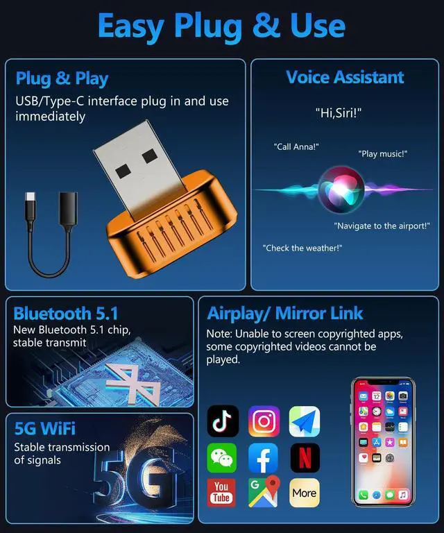 Super smooth maps, music, and calls. No buffering, no dropouts. A reliable wireless carplay solution for daily drives.