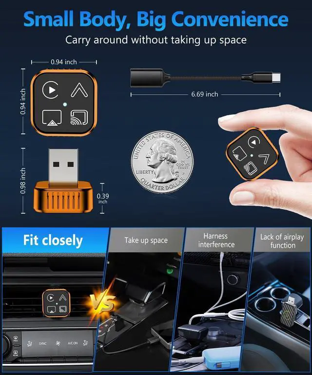 This bluetooth carplay dongle usb gives you clear calls, no dropouts. Stays connected strong.