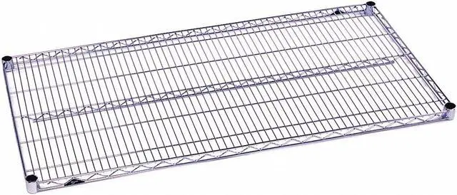 Wire Shelf, Color Silver, Chrome Finish, Material Steel, Mounting Hardware Required Yes, Mounting Location Bottom, Middle; Top, Number of Shelves 1, Overall Depth 24 in, Overall Width 24 in, Shelf Adjustment Type Split Sleeve, Shelf Depth 24 in, Shelf Width 24 in, Load Capacity 800 lb, Lip Type Stationary, Lip Height 1/4 in, Includes Mounting Hardware Yes, Includes (4) Pairs of Split Sleeves, Yes NSF Certified, Dry, ISO 9001-9002 Standards. This item has been restricted from sale in the following state (s): []